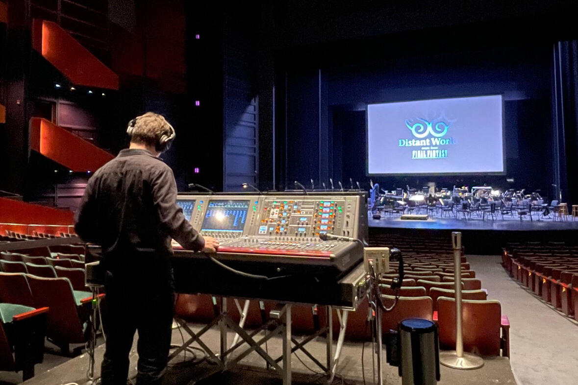 in 2018, I started running front of house sound for the Distant Worlds: music of FINAL FANTASY Orchestra concert, which features the music of FINAL FANTASY performed with a full orchestra and choir. Since then I've been running sound for a number of symphony tours that have played in concert halls and arenas across the globe.If you have a live event requiring audio support, I have the experience and skills to handle any technical need. From the initial advance of sourcing backline and audio gear, to running sound for front of house or monitors, I can help your event run smooth and sound great.